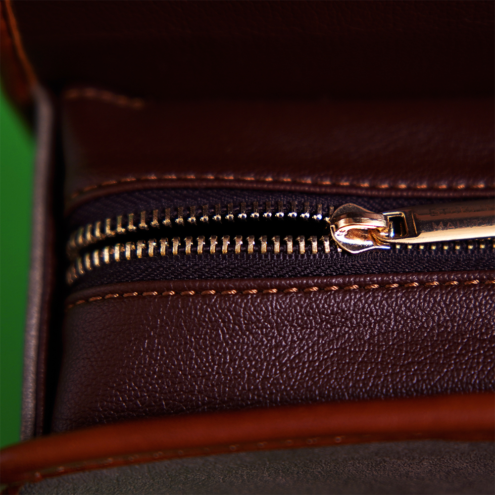 Detachable strap with 21.50″ drop for shoulder or crossbody wear.