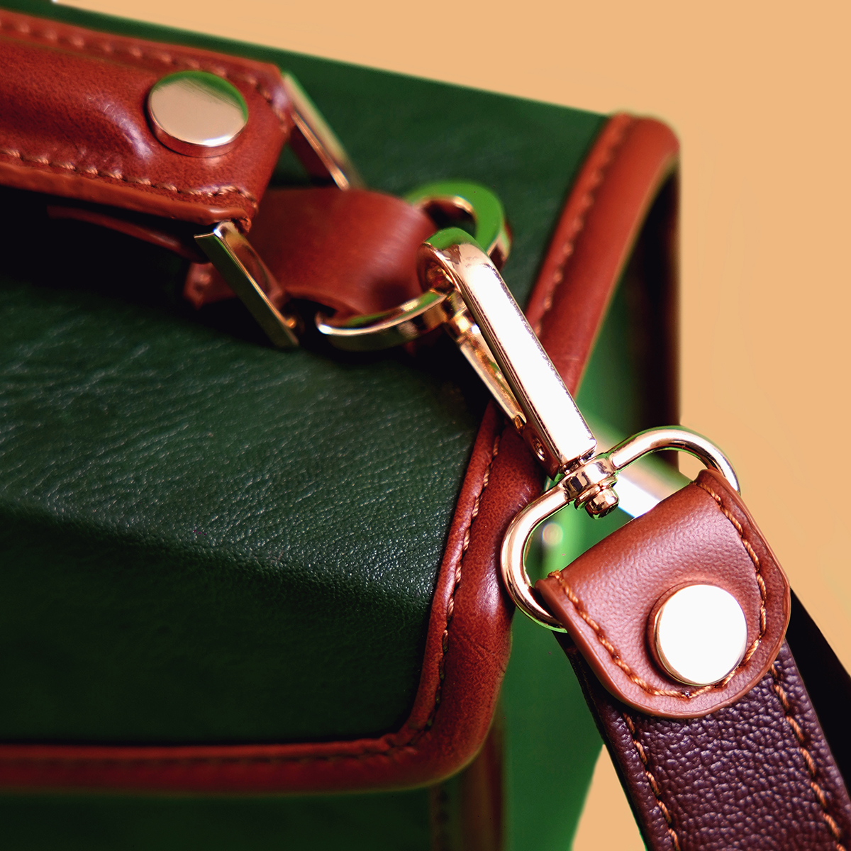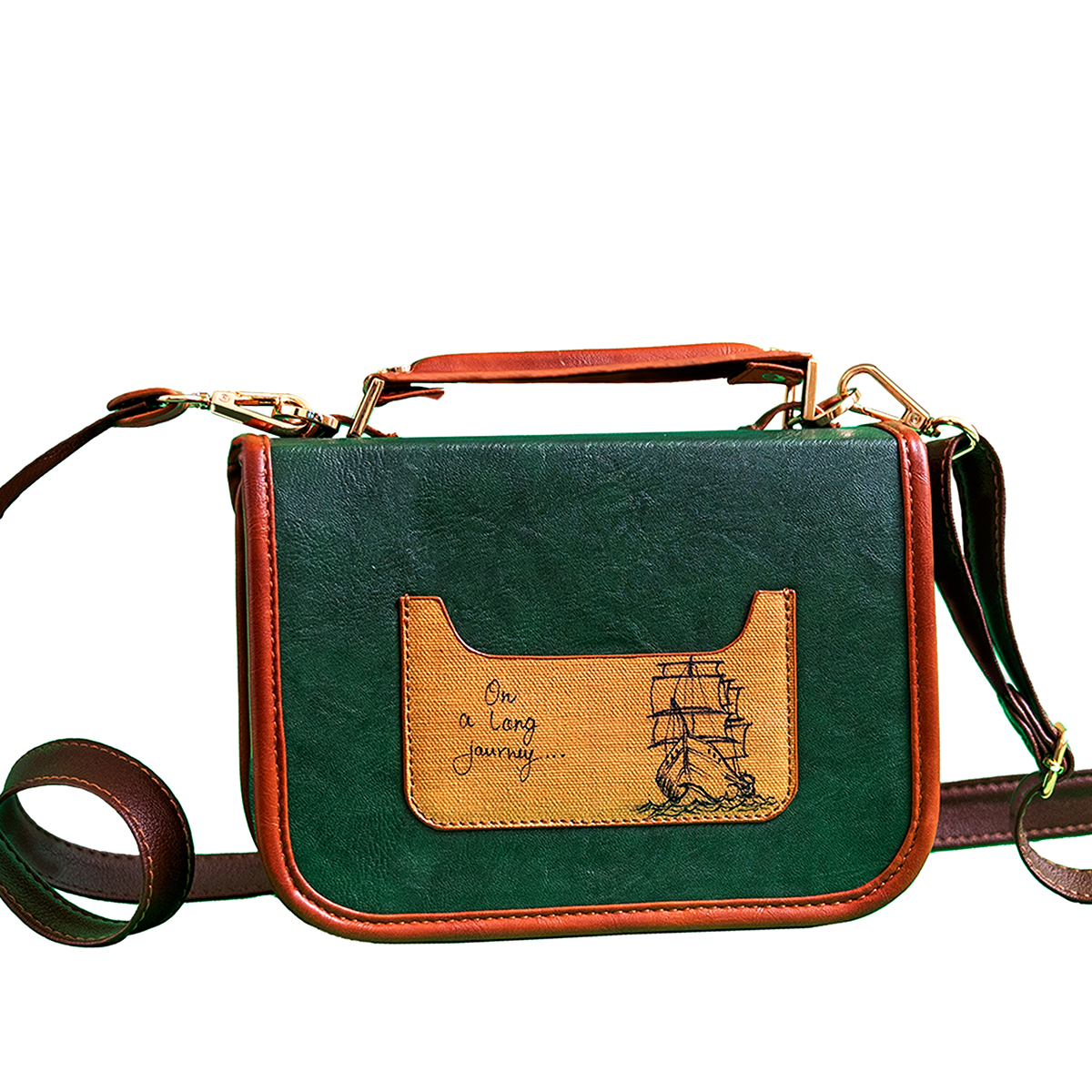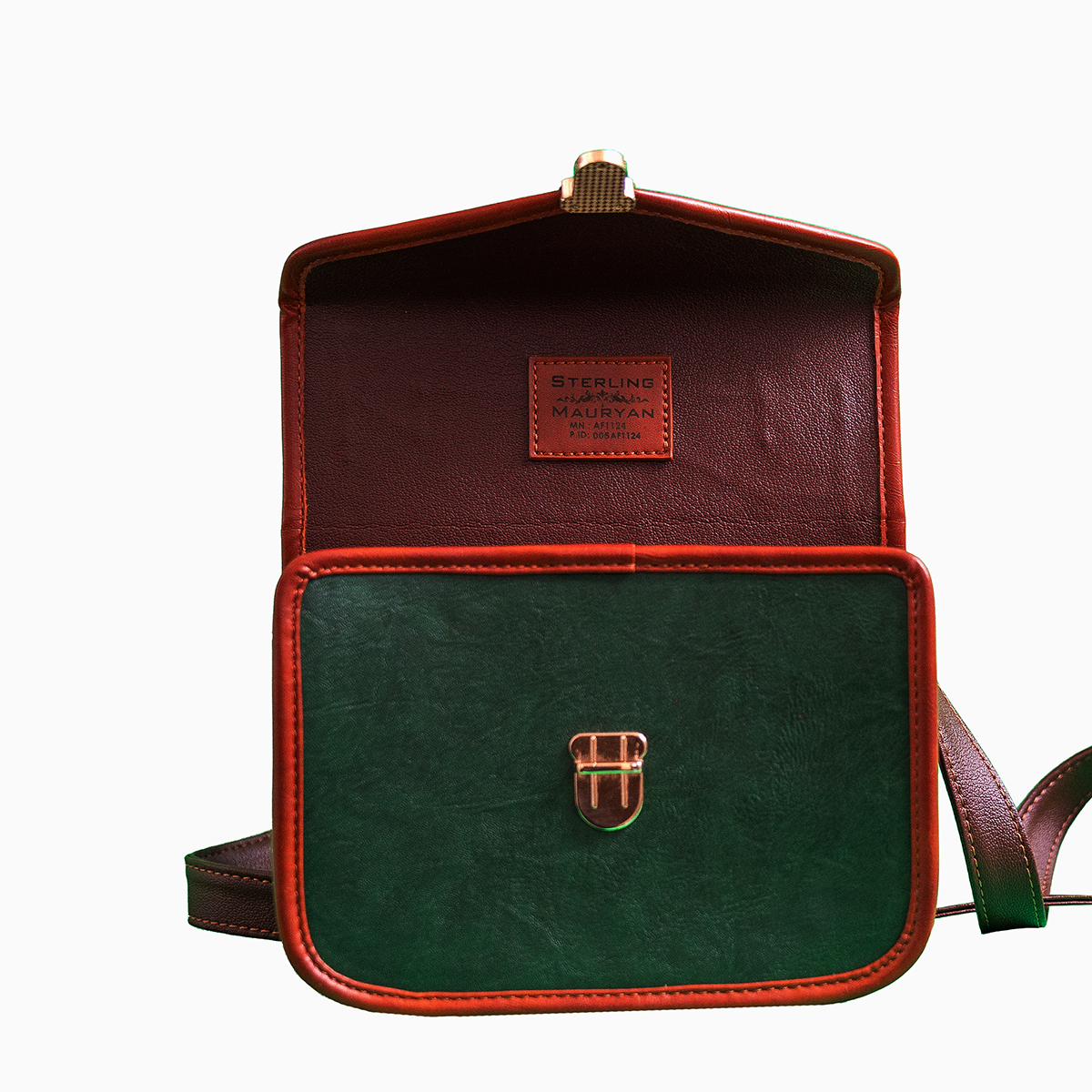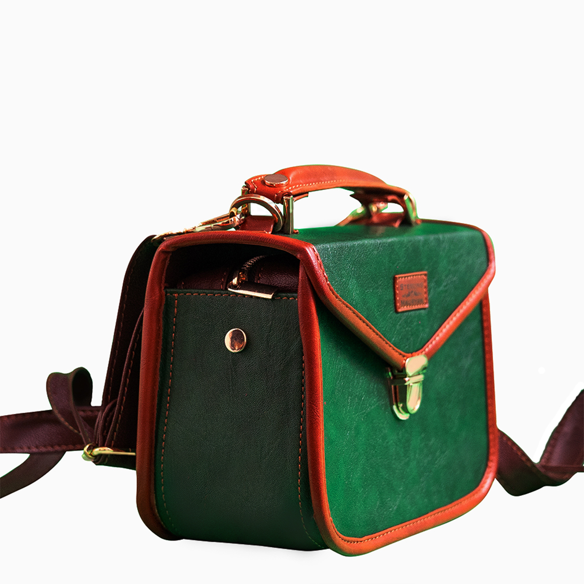 Specially Crafted Vegan leather Classy style rigid structured bag. Hand-painted on front pocket. Vegan leather interior with single compartment.